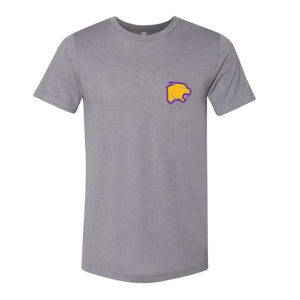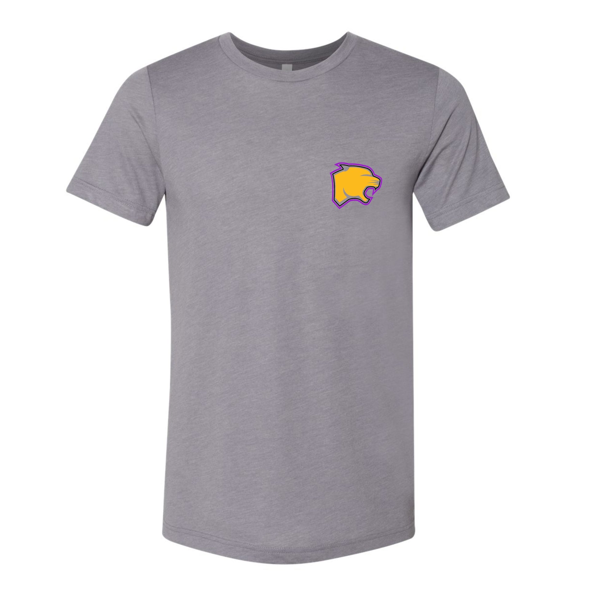 Show your team spirit with this vibrant Cougars Flag shirt, featuring a bold front and back design. The front proudly displays the Escalon Cougar mascot head, while the back echoes the theme with a little patriotism for a standout look. Available in multiple styles for youth and adults, this shirt combines comfort with playful pride, perfect for game days or casual wear.