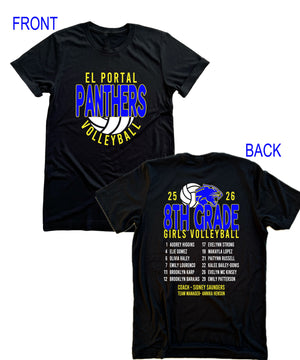 Show your team spirit with the El Portal Volleyball Dots shirt, featuring a vibrant splash of yellow panthers and volleyball graphics. This playful design brings energy and fun to your game day look while keeping you comfortable on and off the court. Perfect for fans and players ready to stand out with style and school pride.