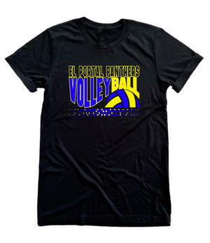 Show your team spirit with the El Portal Volleyball Dots shirt, featuring a vibrant splash of yellow panthers and volleyball graphics. This playful design brings energy and fun to your game day look while keeping you comfortable on and off the court. Perfect for fans and players ready to stand out with style and school pride.