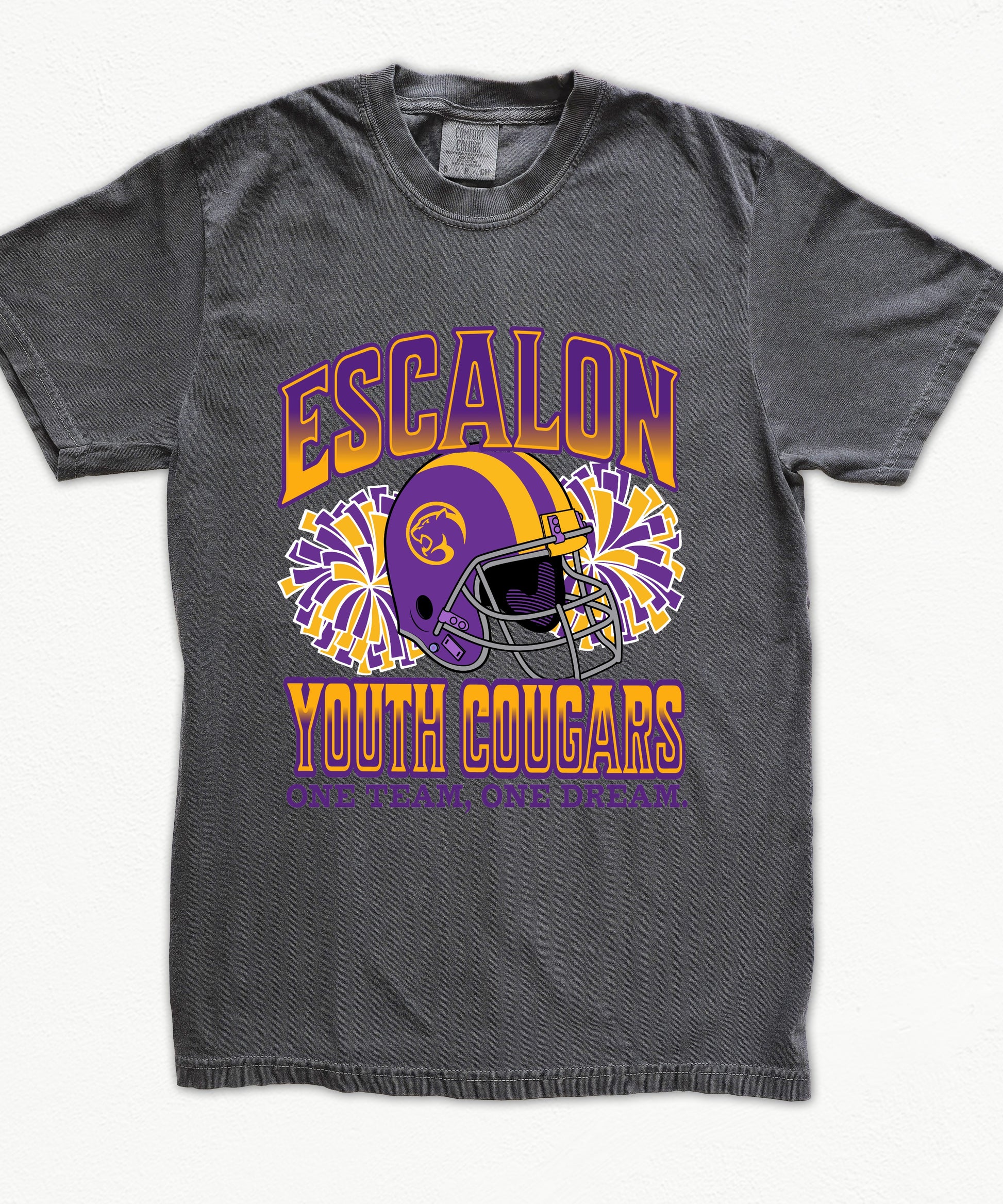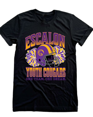 Celebrate team spirit with the EYC One Team. One Dream. shirt, perfect for youth football and cheer fans. This playful design captures the energy and unity of the Escalon Youth Cougars, making it a fun way to show your support and pride. Whether at the game or around town, wear it loud and proud!