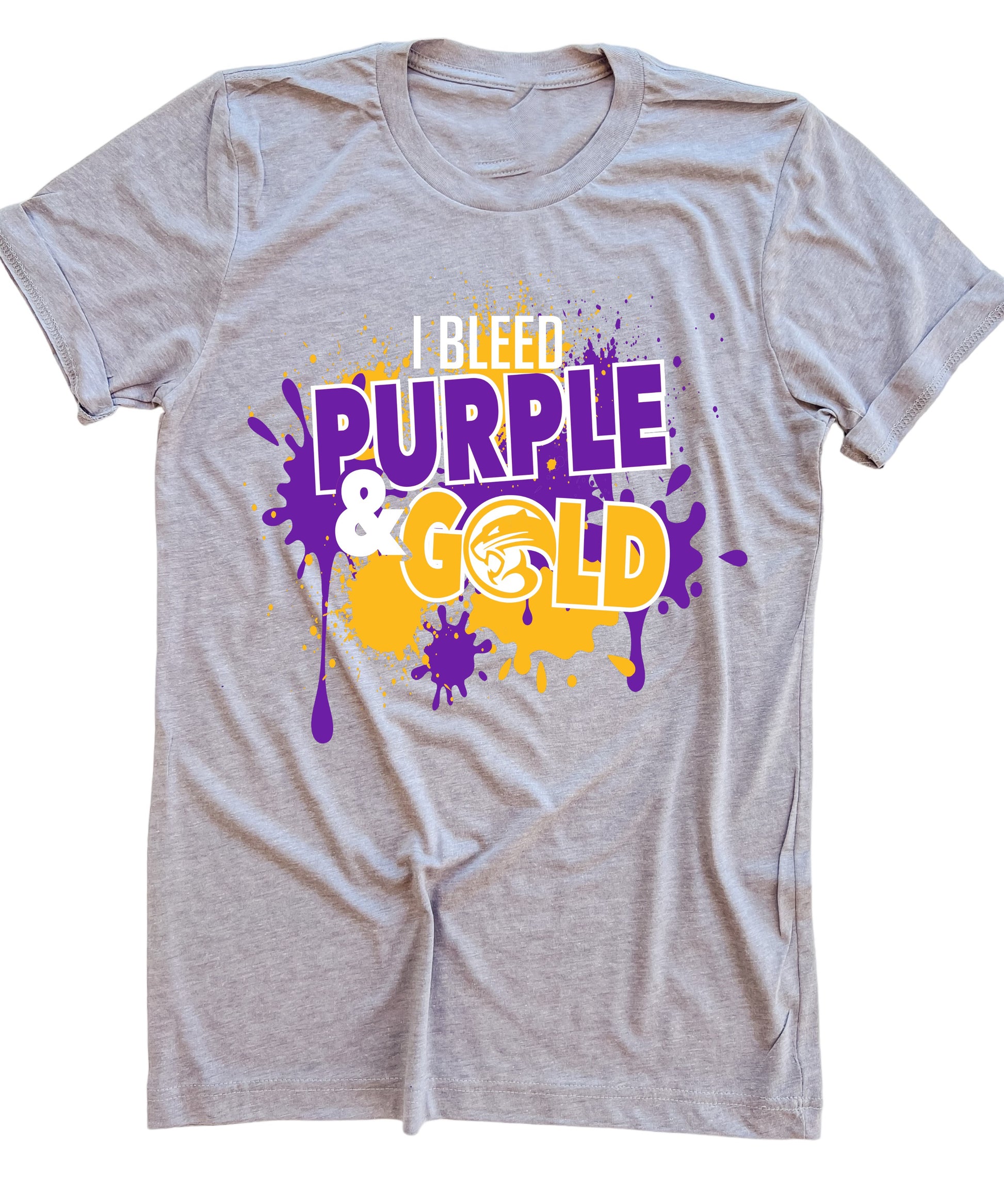 Show your true colors with this playful "I Bleed Purple and Gold" shirt, perfect for proud Escalon Youth Cougars fans. Comfortable and vibrant, it’s a fun way to celebrate team spirit and stand out at every game or event. Wear your loyalty loud and proud!