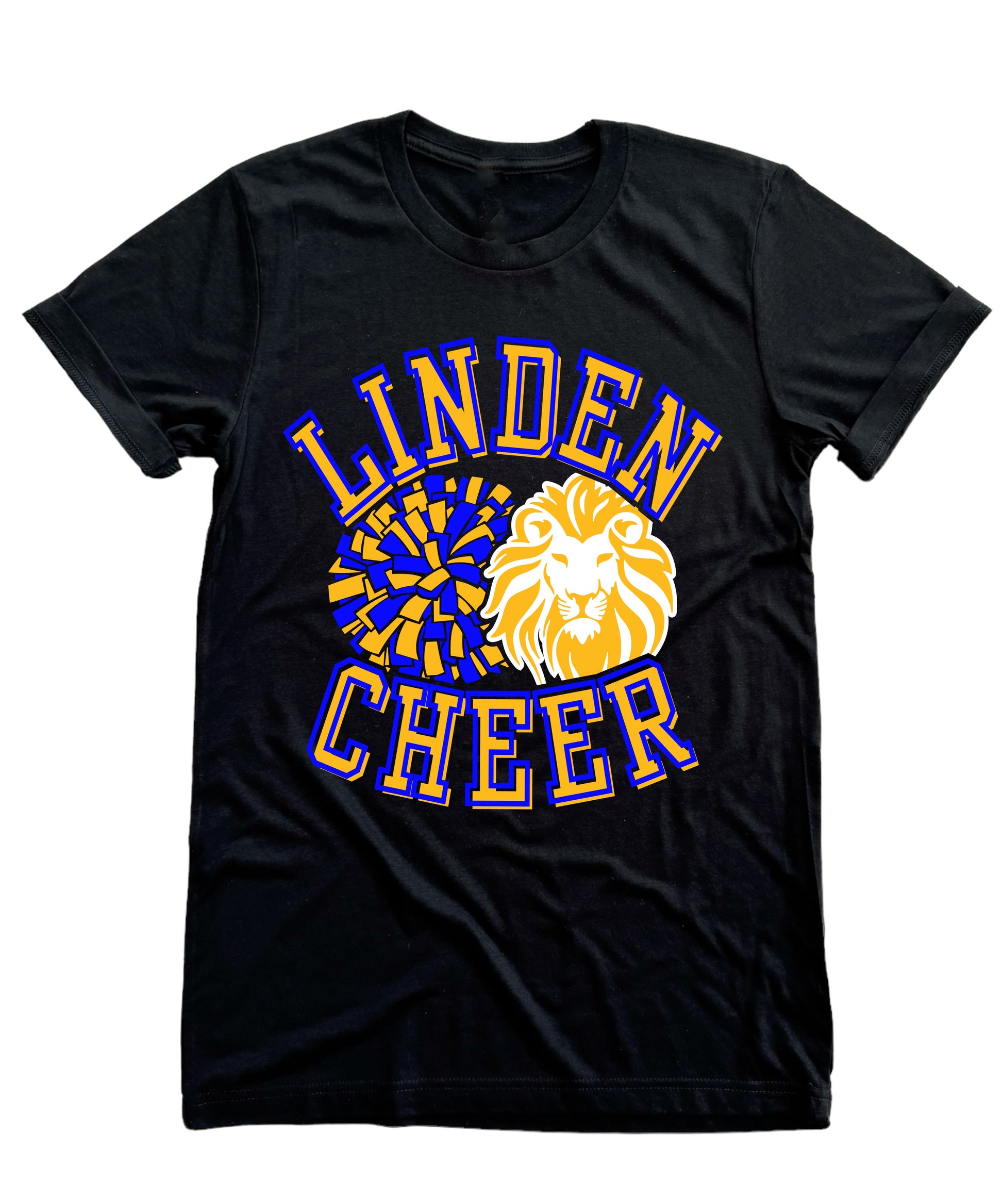 Show your unwavering support for the Linden Lions with this striking design in vibrant blue and athletic gold. Featuring a bold lion and spirited pom poms, it’s the perfect way to stand out and boost team morale. Don’t miss your chance to cheer louder and prouder—wear your pride and inspire the crowd!