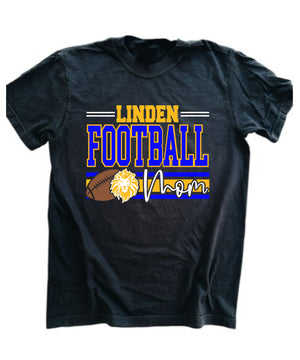 Show your team spirit with the Linden Lions Football ____Lines shirt, featuring bold blue and athletic gold colors that proudly represent your support. The word mom can be changed to whatever word you want. Designed for comfort and style, this shirt is perfect for cheering on your player at every game while showcasing your dedication as a football mom. Durable and vibrant, it’s an essential addition to your game day wardrobe.
