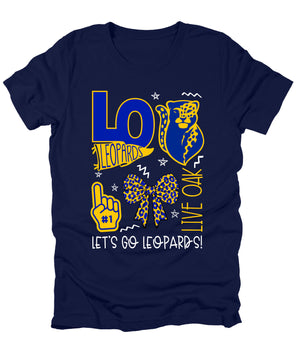 The Live Oak Leopards Doodle shirt features a fun, hand-drawn style design that captures the energetic spirit of the leopard mascot. With playful doodles and bold accents, this shirt brings a creative and lively vibe, perfect for showing off your school spirit with a quirky twist.