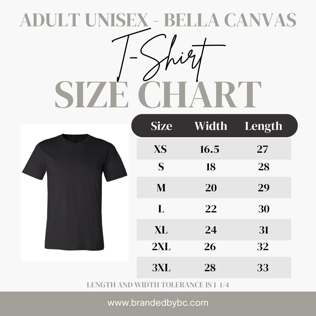 Pictured above is our Bella Canvas unisex t. Please use the drop down menu select the proper shirt style.