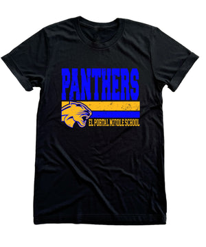 Get ready to roar with the El Portal Panthers school spirit shirt! Featuring the fierce Panthers logo, this fun and comfy tee lets you show off your panther pride wherever you go.