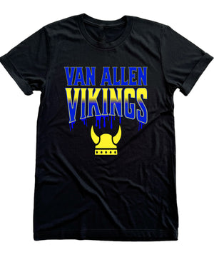 Show off your Viking pride with the Van Allen Vikings Drip shirt! This playful design blends bold style and school spirit, perfect for standing out at school or casual hangouts. Comfortable and eye-catching, it’s a fun way to celebrate your school with a fresh, modern twist.